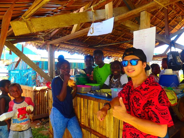 パン粉がないからパンを買ってきて削り、カツオは丸々1匹買ってきて捌いて、鱗をとって骨をとって、、、とっても手間がかかります。水道ないから水も汲んでこないと、、、(※想像してください。汲んでこないと水がない環境で料理することを。蛇口をひねっても水が出ないということを。恐ろしいでしょ?でも慣れます笑)