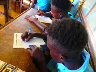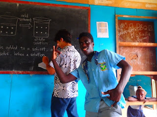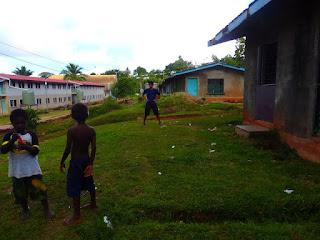 ぺこぺこのボールでみんな楽しむ。日本だったら捨てられちゃうようなボールを使ってる時もあります。ソロモンの子たちはサッカー大好き!多分サッカーくらいしかスポーツを直接みたことないのかも。大人がやってる姿を見て、マネをしてるって感じかな??