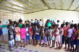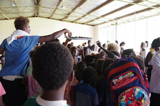 今度は学校に戻って、みんなで食事をとる。