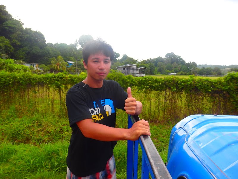 同僚のお父さんは船を持ってるから、それを使うみたい。 (ここで売られているガソリン、結構高いです。50Lで7500円くらいだったから、1Lあたり150円くらい。現地の人たちからしたらかなり高価) 猛烈な直射日光でおでこがバーニングしそうな中、フルーツを食べながら、移動 …