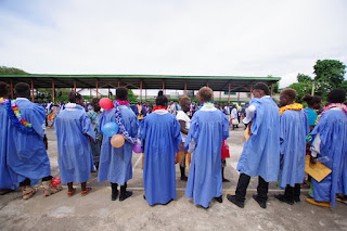 日本の卒業式だと、予行練習があったりしますが、そんなものはありません。ぶっつけ本番。卒業式のあとにはみんなでご飯を食べます。そのご飯は、近所のおばちゃんたちが作ってくれます。学校はその材料の手配と場所の確保が仕事の一つ。二箇所で料理を作るそうなので、買ってきた食材たちを半分に仕分ける作業を進めることに。