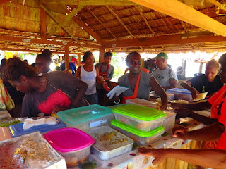 学校に着いた頃(9時)にはすでにお弁当の準備も出来上がりそうな様子で、会場まで出来上がった料理たちを運んだり、朝ごはん(ココナッツとバナナ)を食べたりしてました。